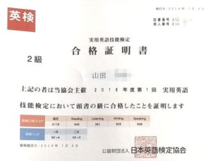 英語に関しては、小学校6年生で英検準2級に合格、中学校2年生で英検2級に合格しました。